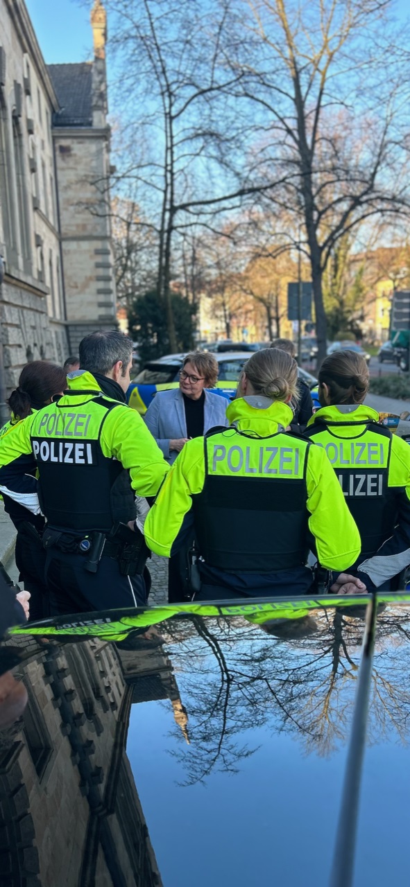 (LT) Bei ihrem ersten Besuch bei der Polizeidirektion Osnabrück hat Niedersachsens Innenministerin Daniela Behrens mit dem Osnabrücker Polizeipräsidenten Michael Maßmann und einigen seiner Mitarbeitenden über Geldautomatensprengungen, Schutz kritischer Infrastrukturen und die nachhaltige Umgestaltung bei den Polizeifahrzeugen gesprochen. Ministerin Behrens nutzt den Besuch, um Banken und Sparkassen zum wiederholten Mal aufzufordern, die Sicherheitsmaßnahmen an Geldautomaten zu erhöhen. Sie lobte aber auch die Polizei in Osnabrück für Fahndungserfolge in diesem Bereich und sprach dabei auch die Festnahmen nach einer Geldautomatensprengung in Melle in der vergangenen Woche an. Den Polizisten, die dabei verletzt wurden, wünschte sie eine gute Genesung.