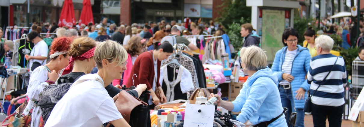 (LR) Zwischen 12.000 und 15.000 Menschen haben gestern den Frühjahrsflohmarkt rund um das Moskaubad im Osnabrücker Stadtteil Wüste besucht. Das berichtet die NOZ. Hier konnten Besucher auf mehr als 400 Ständen Kleidung, Haushaltsartikel, Spielzeug, Schmuck und Bücher kaufen.