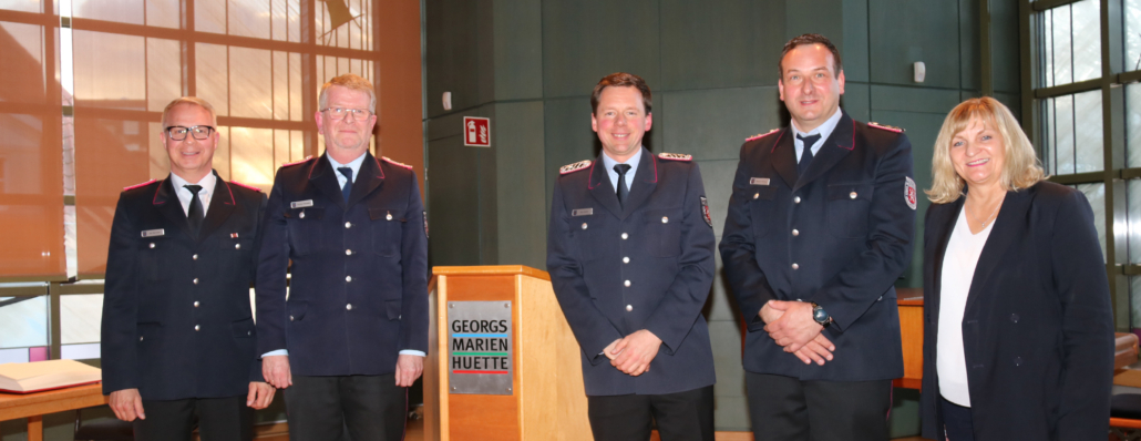 (LR) Die Ortsfeuerwehr Kloster Oesede hat ein neues Führungsduo. Dort übernimmt nach Angaben der Stadt GM-Hütte Felix Prescher als neuer Ortsbrandmeister der Ortsfeuerwehr, Benjamin Boßmeyer wird sein Stellvertreter. Beide wurden von Bürgermeisterin Dagmar Bahlo während einer Feierstunde im Rathaus ernannt und vereidigt. Zuvor wurden der langjährige Ortsbrandmeister Christian Petersmann und sein Stellvertreter Axel Westerheide verabschiedet. Petersmann hatte die Ortsfeuerwehr 18 Jahre geleitet.
