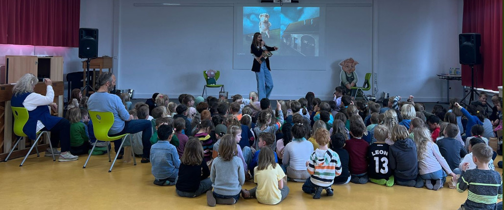 (DB) Zum Welttag des Buches haben angehende Veranstaltungskaufleute der BBS Pottgraben einen bunten Vorlesetag für Grundschulkinder der 1. und 2. Klassen der Heilig-Geist-Grundschule in Osnabrück organisiert – mit Geschichten, Musik und jeder Menge Lesespaß. Autorin und Musikerin Jennifer Schotter war ebenfalls mit dabei und begeisterte mit ihrem Kinderbuch Das Pudelschwein und dem passenden Song „Gemeinsam“. Mehr Infos gibt es in unserem Mitschnitt: