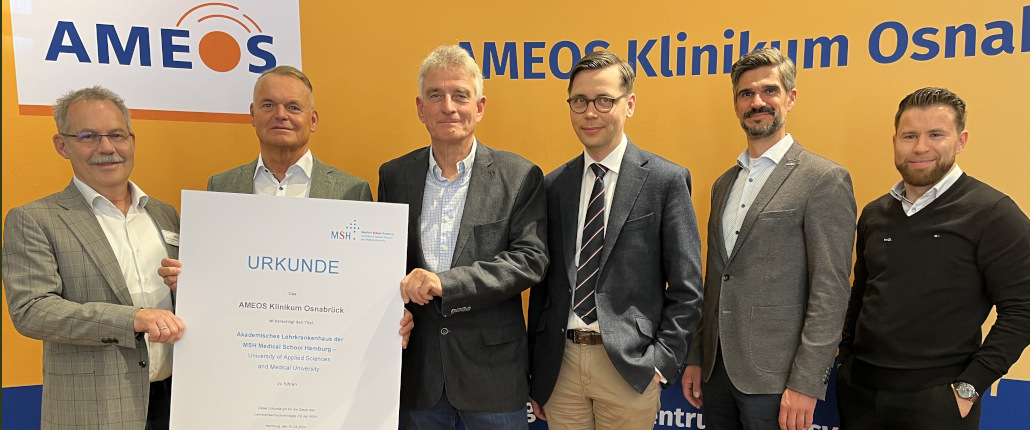 (DB) Gute Nachrichten aus dem AMEOS-Klinikum Osnabrück: Nach einigen schwierigen Schlagzeilen gibt es nun echten Grund zur Freude. Die Klinik ist ab sofort Akademisches Lehrkrankenhaus der Medical School Hamburg (MSH). Medizinstudierende können jetzt ihr Praktisches Jahr in der Psychiatrie absolvieren – mit viel Praxis und engem Patientenkontakt. Seit dem 1. April 2025 ist das Programm offiziell gestartet, die ersten vier PJ-Plätze sind bereits vergeben – bei Bedarf wird aufgestockt. AMEOS-Vorstandsmitglied Michael Dieckmann sieht darin eine Chance für den Standort und die Fachkräfte von morgen. Bewerbungen laufen bundesweit über www.pj-portal.de.