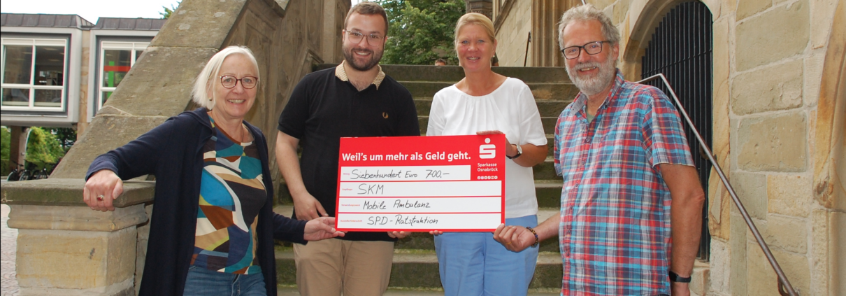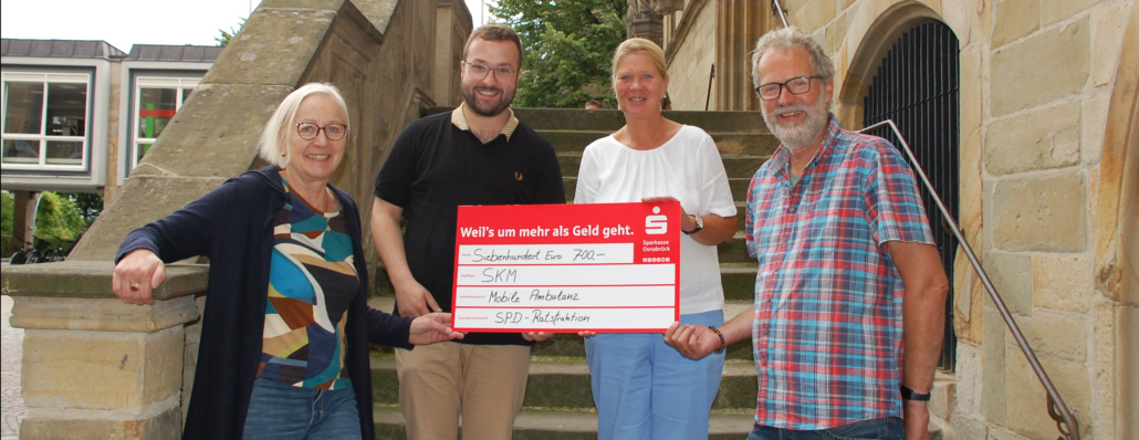 (LR) Die Osnabrücker SPD hat die Wohnungslosenhilfe mit über 700 Euro unterstützt. Das Geld wolle die Organisation in einen medizinisch ausgestatteten Kleintransporter investieren. Vorgesehen ist, dass ehrenamtliche Ärzte, Pflegekräfte und Therapeuten mit dem Fahrzeug durch Osnabrück fahren. Damit soll in Zukunft die medizinische Versorgung von Obdachlosen verbessert werden. Aktuell sei das Ziel, ab nächstem Jahr zwei bis drei Tage pro Woche mit dem Transporter feste Orte in Osnabrück anzufahren.