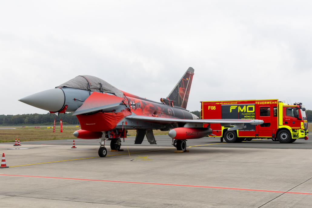 (HG) Am Flughafen Münster Osnabrück starten und landen aktuell mehrere Kampfjets der Luftwaffe. Grund dafür ist eine Übung der Luftwaffe. Geprobt wird am FMO, inwiefern die zivilen Flughäfen auf den Umgang mit militärischen Flugzeugen vorbereitet sind. Kampfjets der Luftwaffe werden während der Übung betankt und abgefertigt, um das Zusammenspiel mit dem Personal ziviler Flughäfen zu proben. Die Luftwaffe hat für die Übung vier Eurofighter bereitgestellt. Die Übung am Flughafen Münster/Osnabrück geht noch bis morgen. Der FMO schreibt, dass der Luftverkehr während der Übung nicht beeinflusst sei.