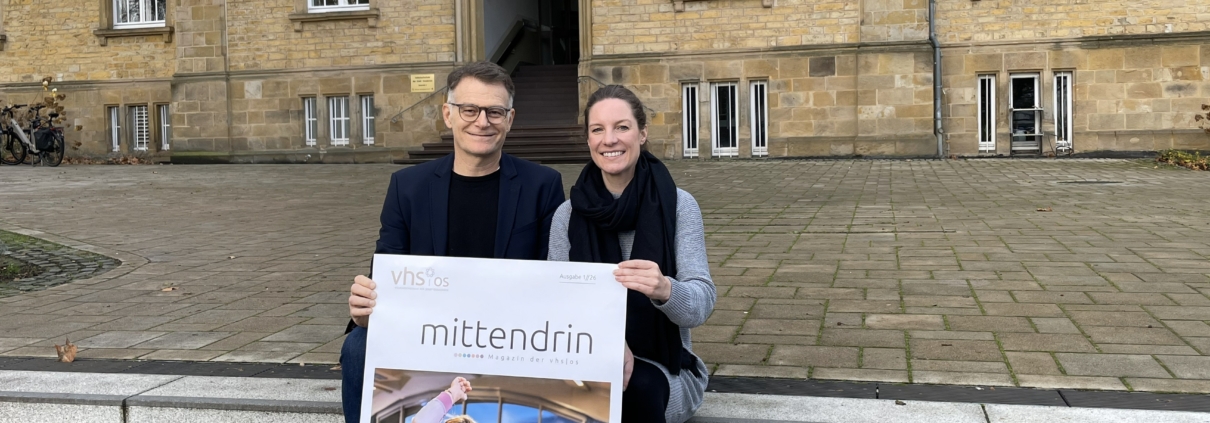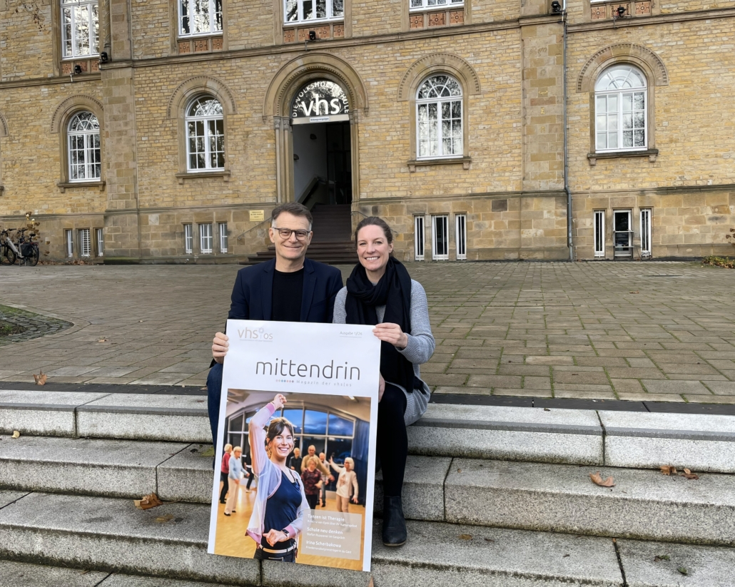 (AM) Die Volkshochschule Osnabrück hat die neue Ausgabe ihres Magazins „mittendrin“ veröffentlicht. Es gibt einen Überblick über das Kursangebot und das Programm für das kommende Semester. Geplant sind unter anderem ein Besuch der Friedensnobelpreisträgerin Irina Scherbakowa. Sie ist Gründungsmitglied der Menschenrechtsorganisation Memorial, die 2022 mit dem Friedensnobelpreis ausgezeichnet wurde. Außerdem werden besondere Kursformate wie Tanz- und Bewegungsangebote für Menschen mit neurologischen Erkrankungen vorgestellt. Das Magazin enthält zudem Hinweise auf Angebote aus den Bereichen Kunst, Kultur, Gesundheit, Bewegung, Sprachen und gesellschaftliche Themen. Alle Kurse können online gebucht werden.