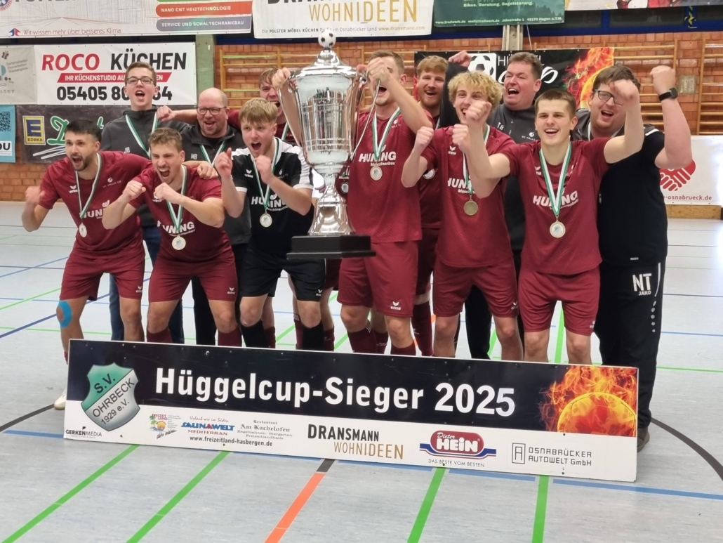 (SW) Der SC Melle hat den Hüggelcup 2025 gewonnen. Der Landesligist setzte sich im Finale in der Sporthalle Hasbergen im Neunmeterschießen mit 5:4 gegen den SV Viktoria Georgsmarienhütte durch. Nach 16 Minuten regulärer Spielzeit stand es 0:0. Erst vom Neunmeterpunkt fiel die Entscheidung zugunsten des SC Melle, der in der Endrunde ungeschlagen blieb und sich damit zum neuen Hüggelcup-Sieger krönte. Bereits 2022 standen sich beide Teams im Finale gegenüber – damals gewann noch Viktoria Georgsmarienhütte. Veranstalter des Turniers war der SV Ohrbeck.