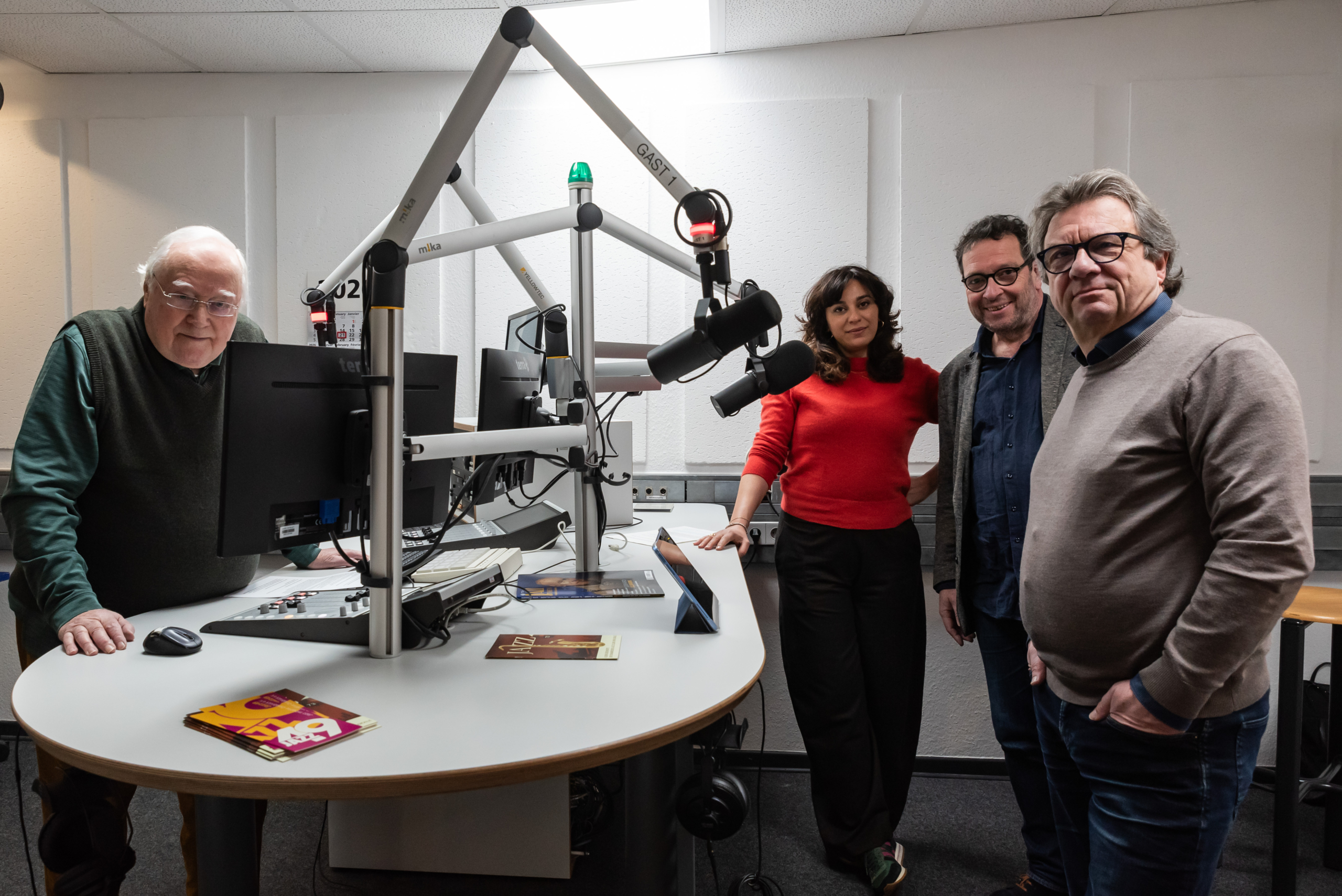 Foto: Radiomacher Klaus-Dieterich Pott mit den Festivalorganisator*innen Shabnam Parvaresh, Ralf Döring, Frank Otte