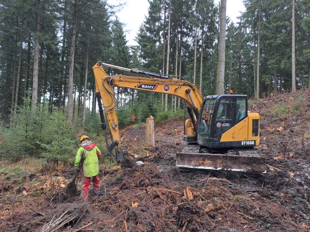 (AM) Die Niedersächsischen Landesforsten pflanzen in der Försterei Nolle bei Dissen im Teutoburger Wald derzeit tausende junge Bäume für den Wald von morgen. Insgesamt setzen die Forstleute rund 23.000 Rotbuchen und zusätzlich Winterlinden und Spitzahorne in den Boden. Ziel der Pflanzungen ist der Aufbau eines stabilen und widerstandsfähigen Mischwaldes als Ersatz für geschädigte Fichtenbestände. Diese Nadelwälder haben in den vergangenen Jahren stark unter Stürmen, Dürre und Borkenkäferbefall gelitten. Mit dem Waldumbau soll langfristig ein artenreicher und klimaresilienter Laubmischwald entstehen. Dabei setzen die Forstleute auf standortgerechte Baumarten, die besser an die Bedingungen im Teutoburger Wald angepasst sind.