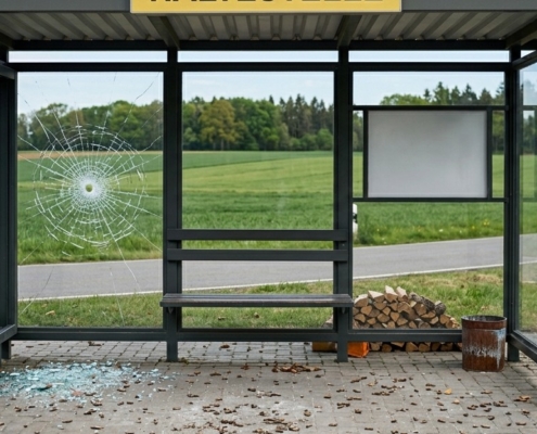 Drei junge Männer zerstören Bushaltestellen in mehreren Orten