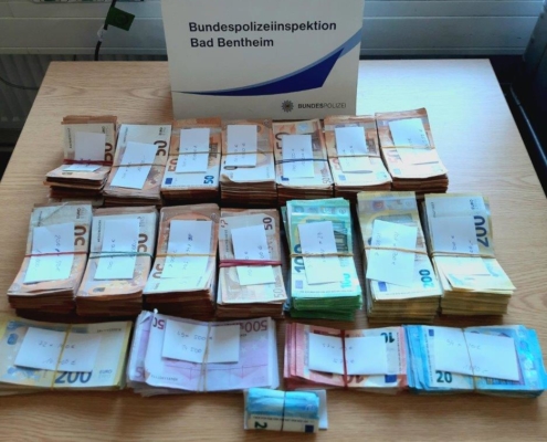 (AM) Bei einer Kontrolle an der deutsch-niederländischen Grenze in Bad Bentheim haben Beamte der Bundespolizei am vergangenen Donnerstag rund 230.000 Euro sichergestellt. Bei einer Grenzkontrolle wurden zwei junge Männer angehalten, die über die Autobahn 30 aus den Niederlanden kamen....