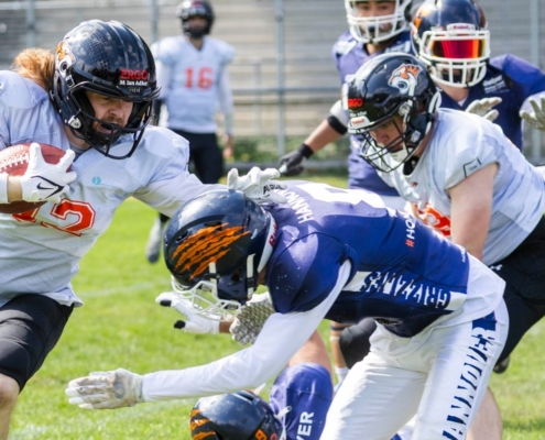 (LR) Die Osnabrück Tigers haben am Samstag gegen die Hannover Grizzlies mit 40:36 gewonnen. Zur Halbzeit lagen die Osnabrücker Footballer noch mit 13:29 zurück. Jedoch erzielten sie in der zweiten Halbzeit noch 27 Punkte und drehten somit das Spiel...