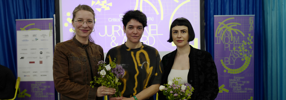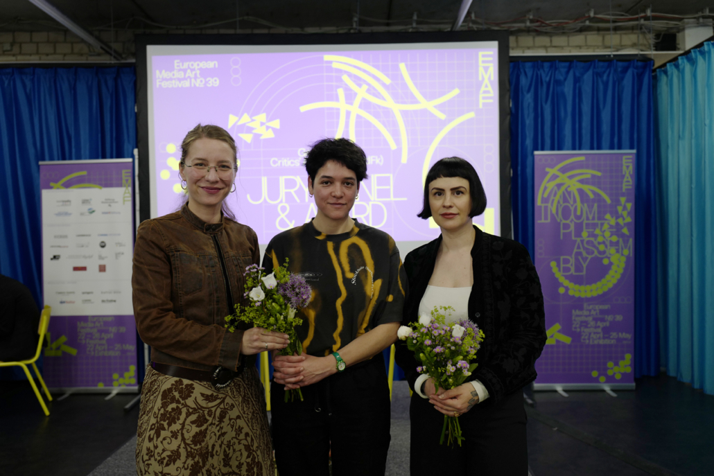 Zu sehen sind: (v.l.n.r.): Maja Roth (Verband der deutschen Filmkritik e.v. – VdFk), Mayra Morán (Cutterin von „Lengua Muerta/Dead Tongue“) und Masha Matzke (VdFk).  Foto_kerstin_hehmann