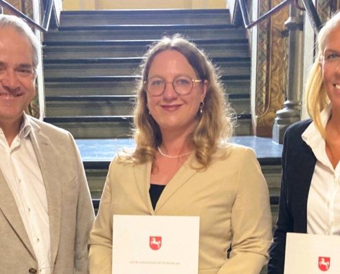 (LR) Am Amtsgericht Osnabrück gibt es mit Dr. Katharina Schmidt eine neue Notarin. Sie hat ihre Erkennungsurkunde am Dienstag vom Präsidenten und der Vizepräsidentin des Landgerichts überreicht bekommen...