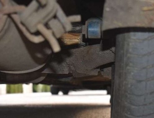 Foto: PolizeiAutofahrerin nutzte Holzklotz statt Feder – Polizei wurde auf Schieflage aufmerksam