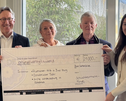 (LR) Der Schüchtermann-Fonds der Schüchtermann-Klinik Bad Rothenfelde hat 21.000 Euro für Hilfsprojekte in der Region Osnabrück gespendet. Die Rumänien-Hilfe in Bad Iburg, die Tafel Osnabrück und die Arche Kinderstiftung in Osnabrück erhielten durch die Spende jeweils 7.000 Euro...