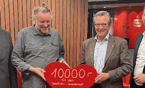 (SW) Die Kunst-Aktion „Ein Stückchen Glück“ des Osnabrücker Künstlers Volker-Johannes Trieb hat gemeinsam mit der Sparkasse Osnabrück 10.000 Euro für den Jubiläums-Spendentopf eingebracht. Für jedes eingesandte Foto einer Kuchen- oder Tortenübergabe zahlte die Sparkasse 10 Euro – zugunsten sozialer Projekte auf der Plattform WirWunder. Die...