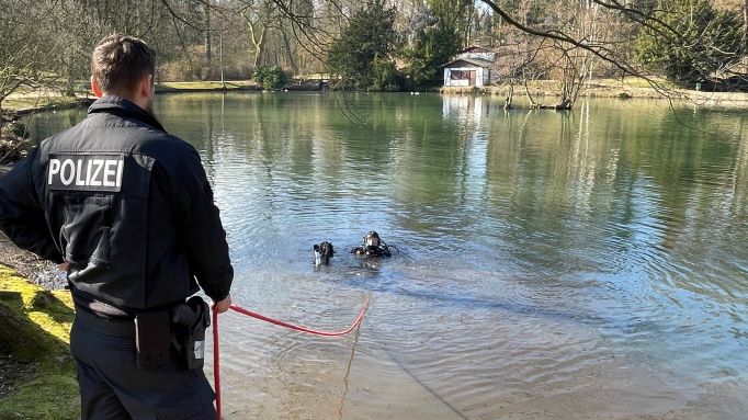 Polizeitaucher im Teich des Kasinoparks