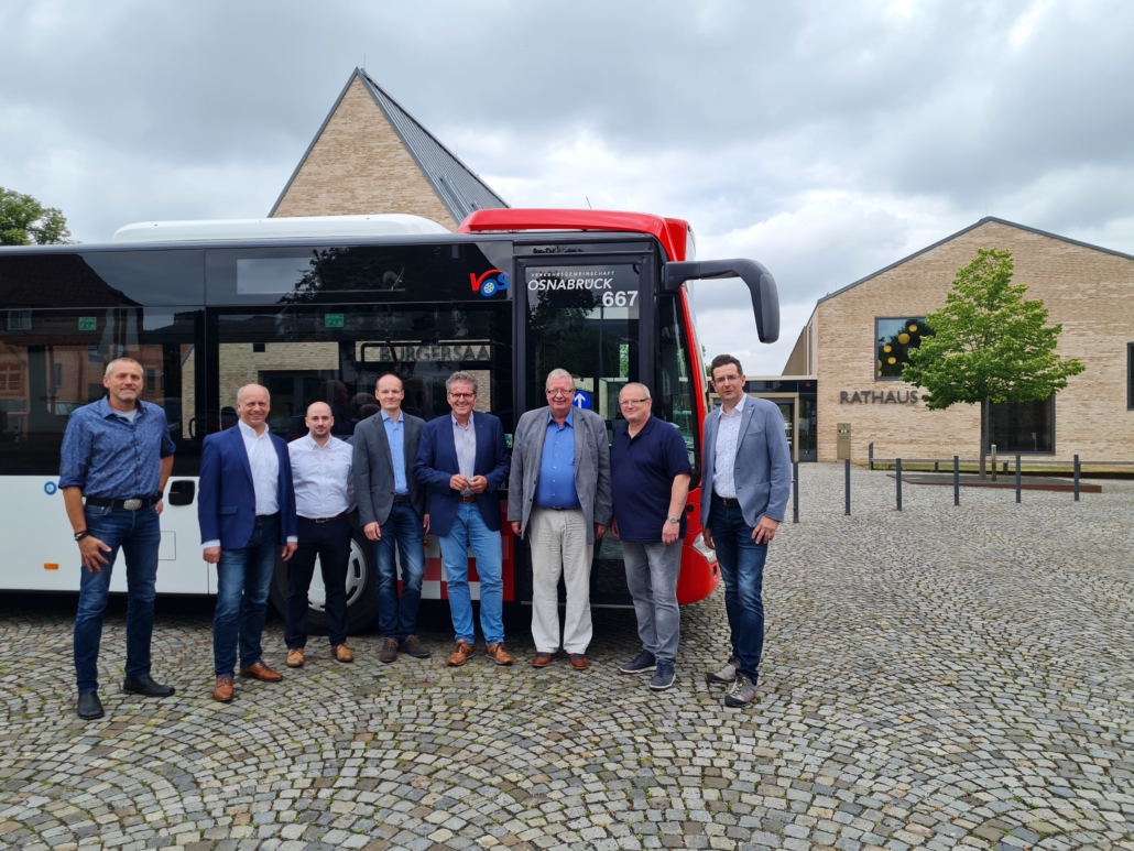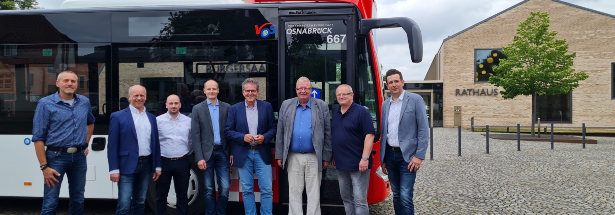 Foto: Die Beteiligten der PlanOS, der VOS Ost, sowie Vertreter aus Rat und Verwaltung freuen sich, dass die Verbesserungen im Bissendorfer ÖPNV ab Ende August umgesetzt werden können. ©Gemeinde Bissendorf