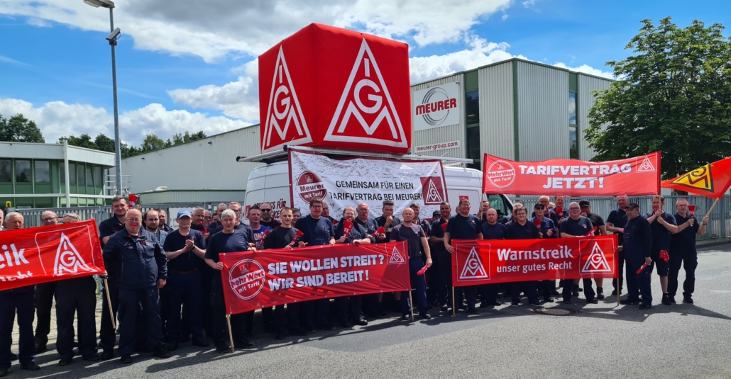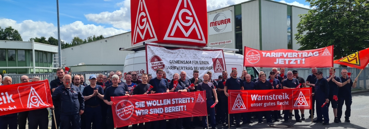 (LT) Die Beschäftigten des Unternehmens Meurer Verpackungssysteme in Fürstenau haben gestern zum ersten Mal in der Firmengeschichte gestreikt. Laut einer Mitteilung der IG Metall Osnabrück haben dabei über 350 Mitarbeitende ein Zeichen gesetzt. Sie haben bei den Warnstreik einen Anerkennungstarifvertrag der Metall- und Elektroindustrie im Bereich Osnabrück – Emsland – Grafschaft Bentheim gefordert. Nach Angaben der IG Metall habe es schon im Mai Gesprächsversuche mit dem Unternehmen gegeben. Darauf sei die Geschäftsführung nicht eingegangen.