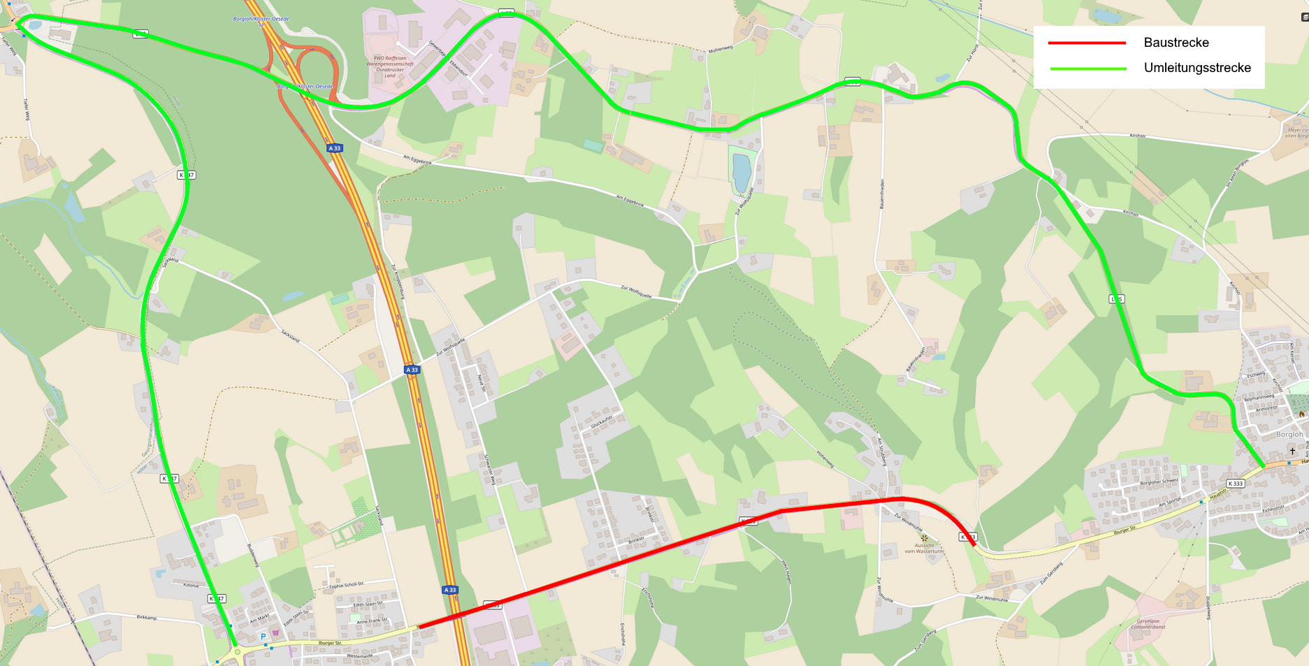 K333: Sperrung zwischen Borgloh und Wellendorf
