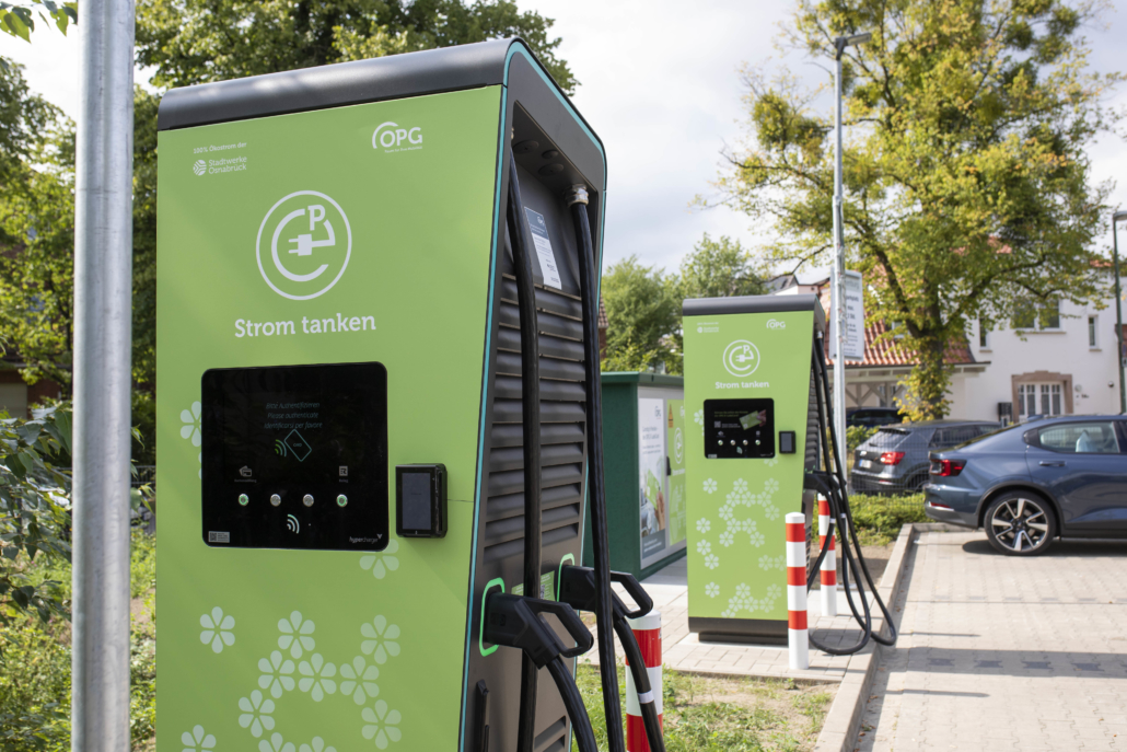 (AA)Am Einkaufszentrum Blankenburg direkt an der A30-Ausfahrt Osnabrück-Hellern hat die Osnabrücker Parkstätten-Betriebsgesellschaft (OPG) zwei weitere Schnellladesäulen in Betrieb genommen. Damit stehen an der Blankenburg nun vier Ladepunkte für E-Autos mit einer Mindestleistung von jeweils 150 Kilowatt zur Verfügung, heißt es in einer Mitteilung der Stadtwerke Osnabrück. Tankt nur ein Fahrzeug an einer Säule, werden auch 300 KW pro Ladevorgang bereitgestellt. Insgesamt erhöhe sich die Zahl der Schnellladestationen in Osnabrück damit auf mehr als 50.