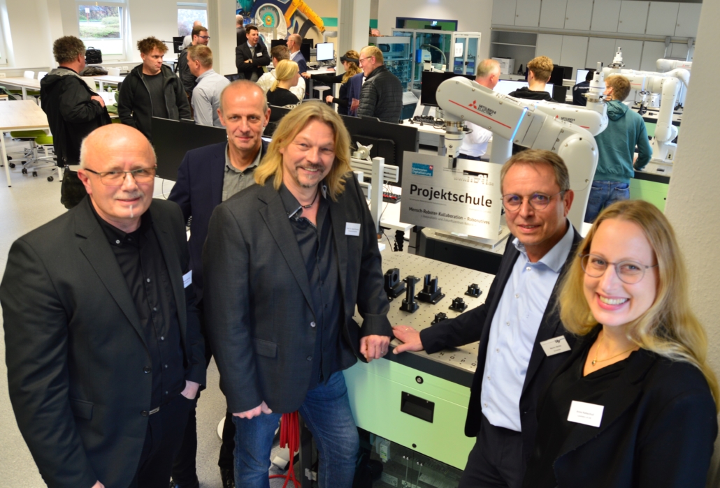 (LT) Die Berufsbildenden Schulen des Landkreises Osnabrück an der Brinkstraße haben ein Innovations- und Zukunftszentrum für kollaborative Robotik eröffnet. Dort können die Schüler und Schülerinnen jetzt mit 13 Robotern arbeiten. Kollaborative Roboter sind Industrieroboter, mit denen Menschen direkt im Produktionsprozess arbeiten. Voraussetzung dafür ist, dass die Roboter auch im direkten Umgang sicher sind und so im Arbeitsalltag keine Abgrenzungen notwendig sind. Neben den Robotern finden sich in dem neuen Zentrum auch Lernlandschaften und moderne Medientechnik.