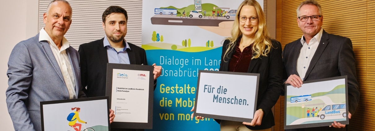 Bild: v.l.n.r. Gerhard Becher (CIMA), Julian Isken (Projektleiter), Landrätin Anna Kebschull, Kreisrat Winfried Wilkens. ©Landkreis Osnabrück, Moritz Münch