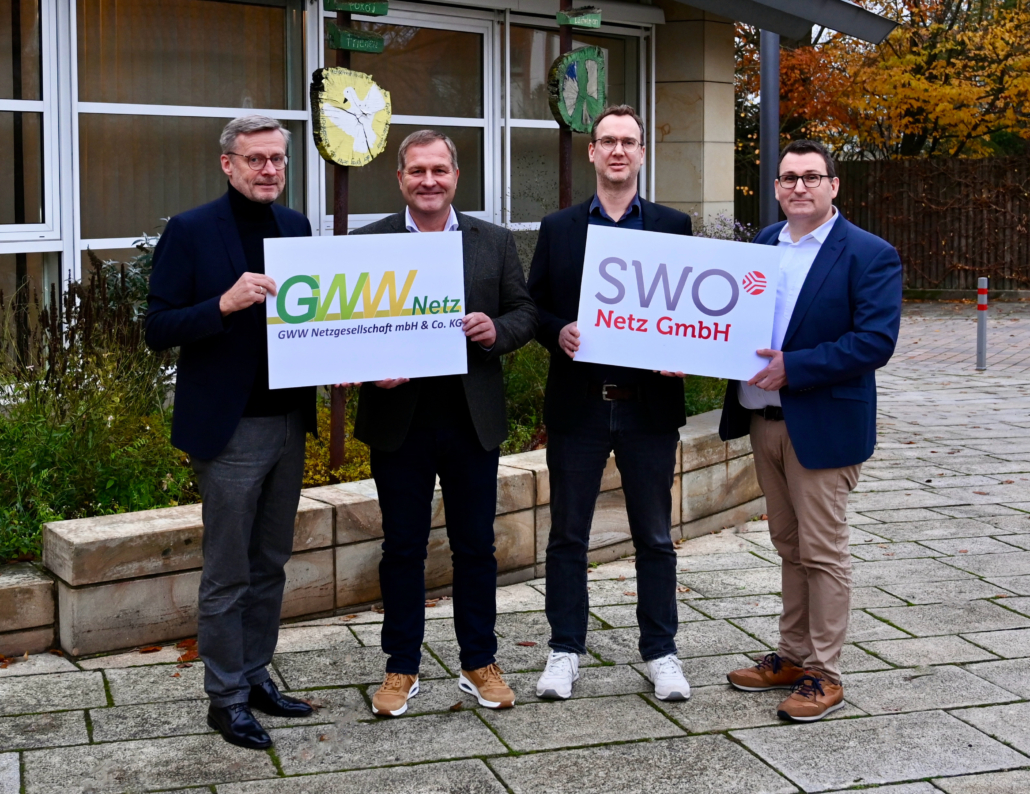 BU: Partnerschaft in Wallenhorst: Bürgermeister Otto Steinkamp, GWW-Aufsichtsratsvorsitzender Guido Pott, GWW Netz-Geschäftsführer Florian Lüttkemöller und SWO Netz-Geschäftsführer Tino Schmelzle (v.l.n.r.). ©SWO Netz