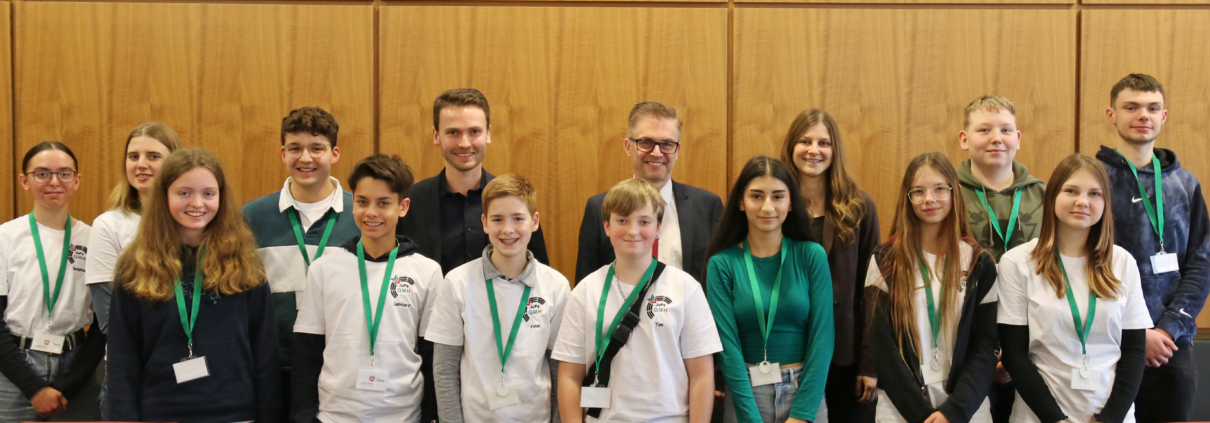 (LR) Das Georgsmarienhütter Jugendparlament hat den Landtag in Hannover besucht. Die Jugendlichen konnten auf der Besuchertribüne des Landtages eine Debatte zum Thema Agrardiesel verfolgen. Die Einladung erhielten sie vom Abgeordneten des Wahlkreises GM-Hütte, Jonas Pohlmann. Mit ihm und den beiden Osnabrücker Abgeordneten Frank Henning und Anne Kura diskutierten die Jugendlichen anschließend über das Bildungssystem, den Klimaschutz sowie wie die Demokratie vor rechten Anfeindungen geschützt werden kann. Regelmäßig treffen sich die Mitglieder des GM-Hütter Jugendparlamentes, um verschiedenen Themen zu diskutieren.