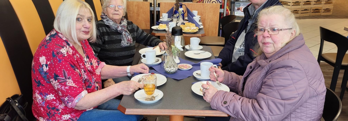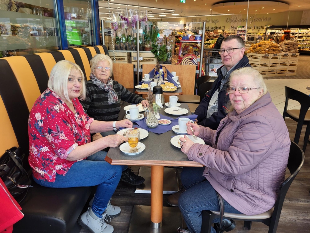 BU: Das Jubiläum des Mobilen Einkaufswagens in Bohmte-Hunteburg wurde mit Kaffee und Kuchen nach dem Einkauf gefeiert. Bild: Malteser