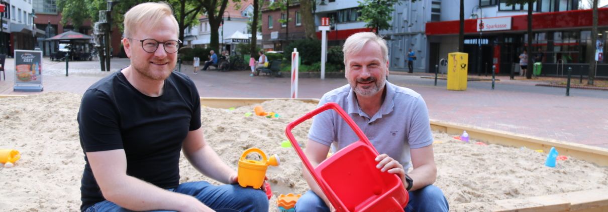 (Nat) Auf dem Roten Platz in Georgsmarienhütte gibt es bis Ende September einen temporären Sandspielplatz. Er soll den Sommer über die Spiel- und Verweilmöglichkeit in der Innenstadt ergänzen, heißt es von der Stadt Georgsmarienhütte. Die Stadt möchte verstärkt auch mit kleineren Mitteln das Stadtzentrum attraktiver machen. Für den Haushalt 2024 hatte die Stadt Gelder für einen Pop-Up-Sandkasten bewilligt. Schon in der Vergangenheit hatte es während Veranstaltungen Sandspielplätze auf dem Roten Platz gegeben, die sehr beliebt gewesen seien.