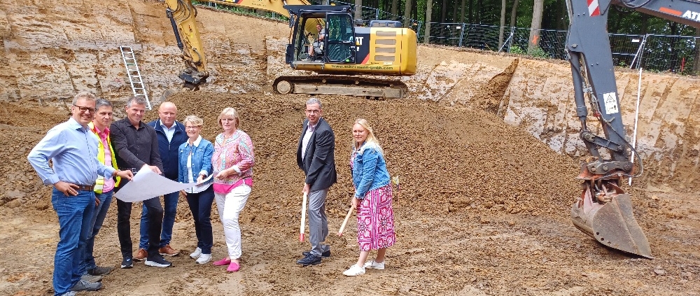 (SW) Mit dem symbolischen Ersten Spatenstich haben Bürgermeisterin Jutta Dettmann und Stadtrat Lutz Birkemeyer jetzt den Neubau des Hochbehälters in Wellingholzhausen eingeleitet. In das großangelegte Projekt investiert das Wasserwerk der Stadt Melle rund 2,2 Millionen Euro. Es ist damit die größte Einzelinvestition, die der Trinkwasserversorger in seiner bisherigen Geschichte tätigte. Der aus dem Jahre 1977 stammende alte Wasserbehälter mit einem Volumen von 1.000 Kubikmetern war in die Jahre gekommen und stark sanierungsbedürftig. Der neue Wasserbehälter soll 1.500 Kubikmeter fassen und bringt aus Sicht der Planer sowohl wirtschaftliche als auch bautechnische Vorteile mit sich. Die Fertigstellung des neuen Hochbehälters soll bis zum Herbst 2025 erfolgen.