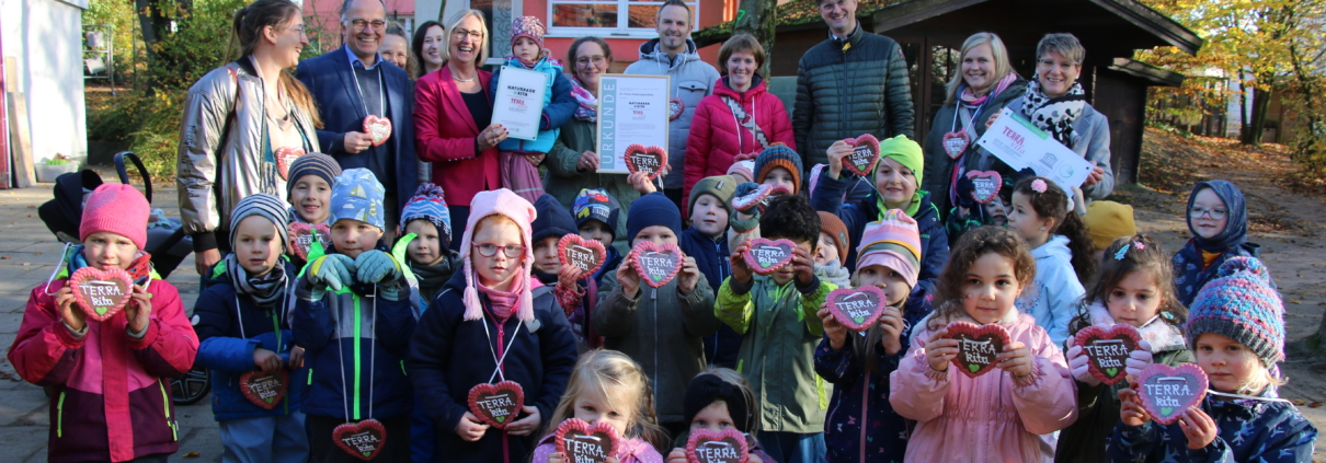 (LR) Die evangelische Paulus Kindertagesstätte in Melle ist die erste Naturpark Kita im Landkreis Osnabrück. Dafür hat die Kitaleiterin im Rahmen einer Feier eine Urkunde des Verbands Deutscher Naturparke überreicht bekommen. Ziel des Konzeptes ist es, dass die Kindergartenkinder neue Erfahrungen in der Natur im Umfeld der Kita zu sammeln können.