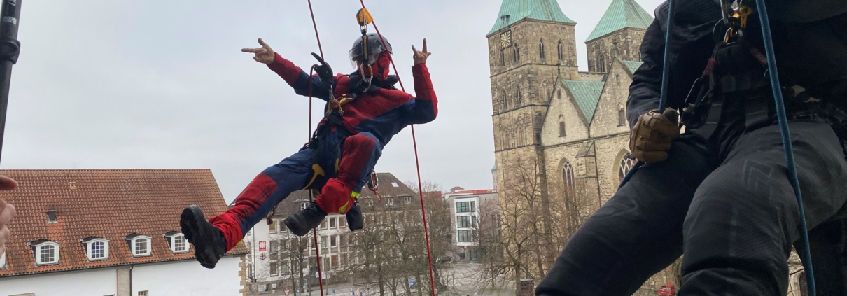 Höhenretter der Feuerwehr Osnabrück in Superhelden-Kostümen