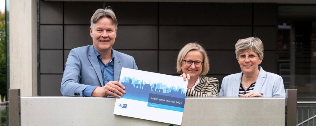 BU: Klaus Sandhaus (Wirtschaftsförderer Stadt Bramsche), Anke Schweda (IHK-Geschäftsbereichsleiterin Standortentwicklung) und Sonja Glasmeyer (Erste Stadträtin Stadt Bramsche). © IHK/Tanja Lewandowski.