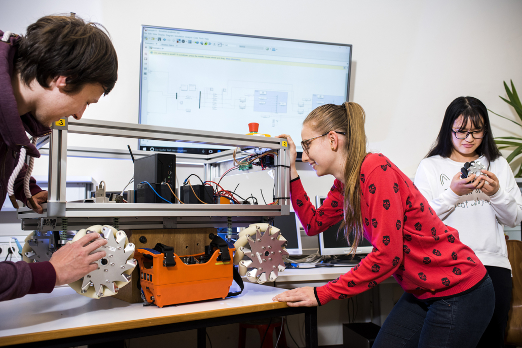 (Nat) 13 Studierenden-Teams der Hochschule Osnabrück präsentieren heute ihre Innovationen in der Elektrotechnik und Informatik. Darunter eine Segel-App, eine intelligente Modellbahn, zwei Roboter, die gegeneinander Fußball spielen und ein Spiel, in dem man bei Starkregen aus einem Keller fliehen muss. Die Projektmesse „Lösungen für die Welt von morgen“ findet von 15 bis 18 Uhr am Campus Westerberg statt. Sie gibt Schülerinnen und Schülern Einblicke in die technischen Studiengänge der Hochschule. In einem Projektslam wird jedes Projekt in einer Minute erklärt. Eine Expertenjury aus Wirtschaft, Schulen und Wissenschaft zeichnet die drei besten Semesterarbeiten aus.