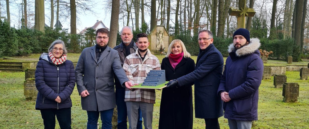 (DB) Die beiden ehemaligen Zwangsarbeiter Ivan Koval aus der Ukraine und Stanislaw Gontek aus Polen wurden am 16. April 1945 in dem Ort Wellendorf von Anwohnern aus dem Ort Kloster Oesede ermordet. In Gedenken an die Opfer wird anlässlich des 80. Jahrestages der Tat am 23. April 2025 ein Mahnmal auf dem Friedhof in Kloster Oesede installiert. Der gestaltende Künstler ist Przemyslaw Martyna aus Wiesbaden, der seiner Installation den Titel „Die letzten Schritte“ gab. Es handelt sich dabei um eine ca. 80 cm breite und 150 cm hohe siebenstufige Treppe aus Granitstein, die als Symbol der Erinnerung und Mahnung fungiert. Auf der Webseite der Gedenkstätten Gestapokeller und Augustaschacht wird ein Informations- und Bildungsangebot eingestellt, das über einen QR-Code am Mahnmal abrufbar sein wird. Die offizielle Einweihung des Mahnmals ist am 07. Mai 2025 um 16 Uhr auf dem Waldfriedhof Kloster Oesede. Mehr Infos zum Thema gibt es in folgendem Mitschnitt: