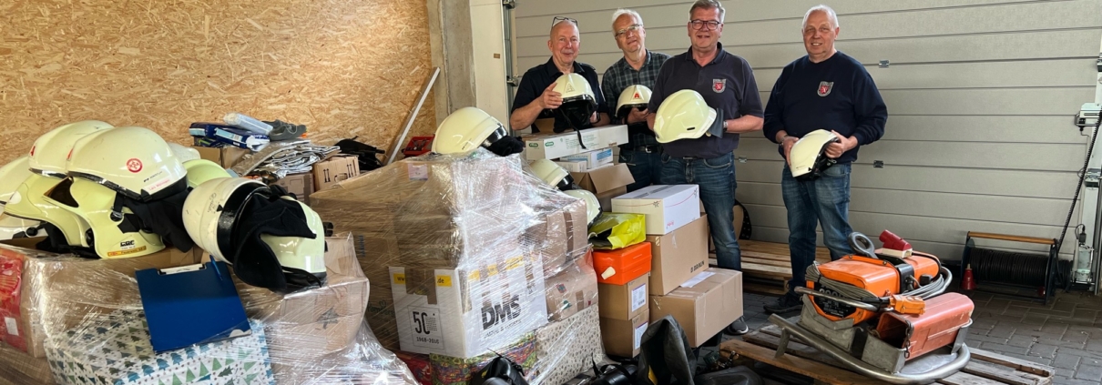 (LR) Die Georgsmarienhütter Feuerwehr unterstützt einen Hilfskonvoi für die Ukraine mit Hilfsgütern. Dafür hat die Feuerwehr bereits nach Angaben der Stadt Georgsmarienhütte Helme, Gurte, Verbandmaterial und weitere Hilfsgüter nach Stade gebracht. Die gespendeten Materialien werden dort nun zwischengelagert. An Christi Himmelfahrt startet der nächste Hilfstransport, den dann Einsatzkräfte aus dem Landkreis Stade an die polnisch-ukrainische Grenze bringen. Ab der ukrainischen Grenze übernehmen dann ukrainische Partner die Spenden.