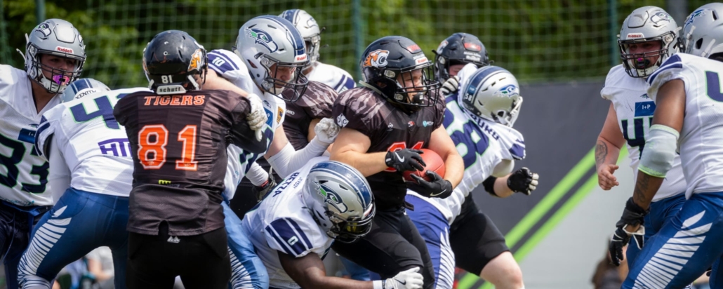 (LR) Die Osnabrück Tigers haben am Samstag gegen die Hannover Grizzlies mit 17:23 verloren. Zur Halbzeit hatten die Osnabrücker noch mit 17:15 geführt. Jedoch erzielten sie in der zweiten Halbzeit keine Punkte mehr und verloren dadurch ihr Heimspiel. Damit haben die Osnabrück Tigers bisher in der Saison ihre beiden Heimspiele verloren und ihre beiden Auswärtsspiele gewonnen. Mit zwei Siegen und zwei Niederlagen stehen die Tigers derzeit auf dem zweiten Platz in der 3. Football Liga Nord.