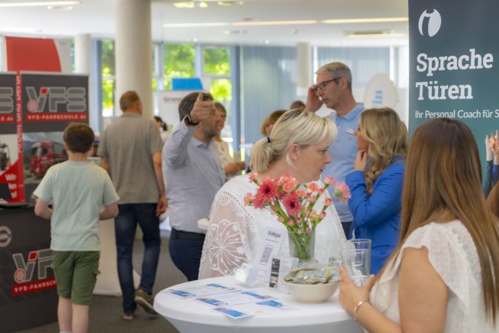 Bildunterschrift: „Beschäftigte und Unternehmensvertreter nutzten die Gelegenheit, sich bei der Agentur für Arbeit und der IHK über das Thema Weiterbildung zu informieren.“ © Agentur für Arbeit)