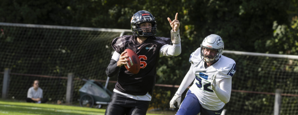 (LR) Die Osnabrück Tigers haben am Samstag ihr erstes Heimspiel in dieser Saison gewonnen. Gegen die Bremerhaven Seahawks gewannen sie deutlich mit 56:18. Zur Halbzeit lagen die Osnabrücker Footballer bereits mit 35:10 in Führung. Für die Tigers war es das letzte Saisonspiel. Sie beenden die Saison als Aufsteiger mit vier Siegen und zwei Niederlagen auf dem zweiten Platz in der 3. Football Liga Nord.