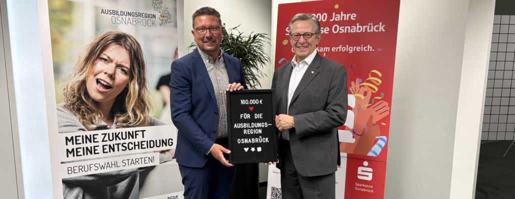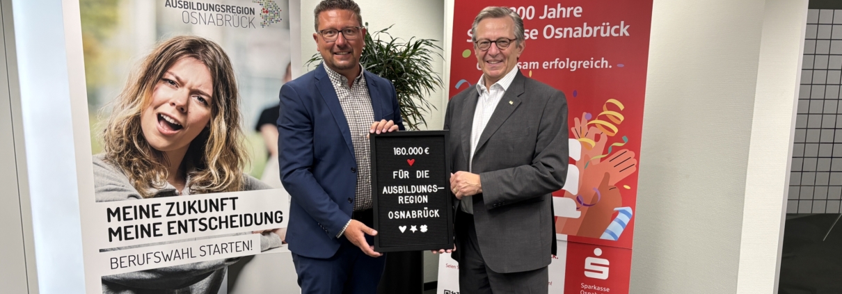 (LR) Die Sparkasse Osnabrück unterstützt den Verein Ausbildungsregion Osnabrück mit 160.000 Euro. Der Verein wolle die Suche nach Ausbildungsplätzen in der Region durch Veranstaltungen und seine Internetseite erleichtern. Das soll mit der Förderung auch verbessert werden, so Birgit Liedmeier von der Sparkasse Osnabrück: