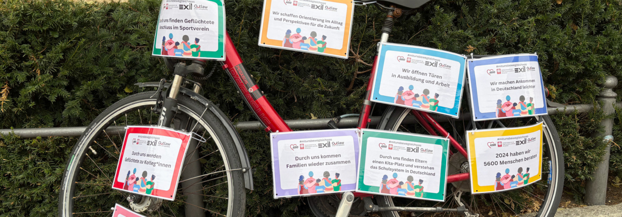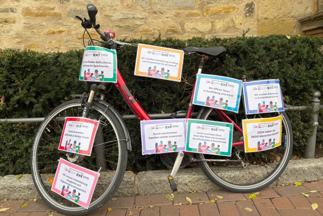 (HG) In Osnabrück ist heute die Aktionswoche Migrationsberatung unter dem Motto #mitunsbewegtsichwas gestartet. Die Beratungsstellen von Caritas, AWO, Outlaw und Exil e.V. stellen Fahrräder mit bunten Plakaten auf, die die Arbeit der Migrationsberatung zeigen und erklären, wie Zugewanderte in Osnabrück unterstützt werden. Ziel der Aktion ist es, die Öffentlichkeit für Integration, Chancen und gesellschaftlichen Zusammenhalt zu sensibilisieren. Sarah Josef vom Exil-Verein findet es „grade in der heutigen Zeit“ wichtig, sich mit dem Thema auseinanderzusetzen. Ihr ist es wichtig, „ein positives Gegensignal zu senden“. Die Fahrräder sind bis zum 2. Oktober an fünf zentralen Orten in der Innenstadt zu sehen, darunter Stadtbibliothek, Hauptbahnhof und Heger Tor.