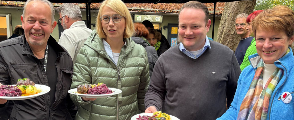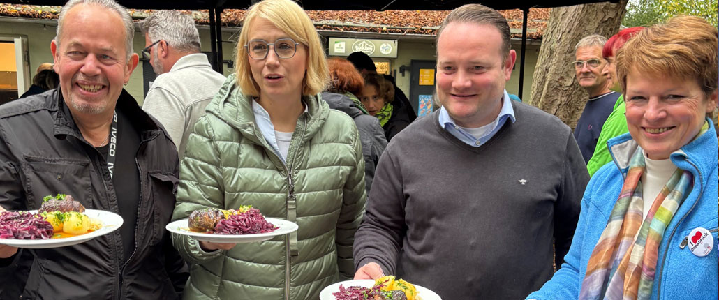 (HG) Bereits zum fünften Mal fand am Sonntag (12.10.) am Osnabrücker Büdchen die Aktion „Gut essen im Abseits“ statt. Rund 170 wohnungslose Menschen konnten sich dort die Haare schneiden und die Füße pflegen lassen. Anschließend gab es ein Drei-Gänge-Menü, serviert von freiwilligen Helferinnen und Helfern – darunter auch Oberbürgermeisterin Katharina Pötter. Organisiert wurde das Gala-Dinner von der Bürgerstiftung Osnabrück. Vorsitzende Ulrike Burghard erklärt: „Es wird so deutlich, dass diese Menschen erkennen: Ich bin doch nicht ein Niemand.“ Viele Teilnehmer bestätigten, der Tag sei für sie ein echtes Highlight gewesen.