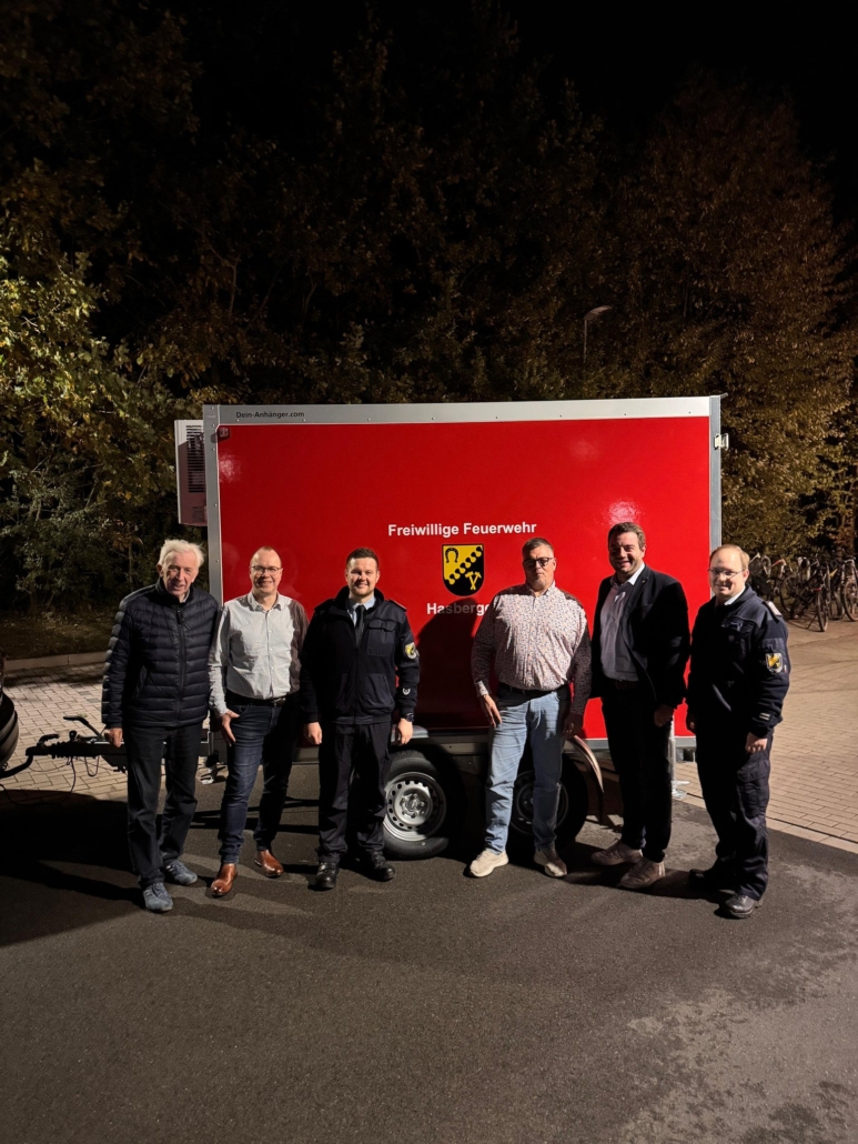 (SW) Bei der Freiwilligen Feuerwehr Hasbergen gab es eine Überraschung: Neben der Übergabe eines neuen Notstromaggregats überreichte der Förderverein der Feuerwehr einen neuen Kühlanhänger. Dies teilte der Bürgermeister von Hasbergen, Adrian Schäfer, mit. Das Fahrzeug wurde vollständig über Spenden und Mitgliedsbeiträge finanziert – insgesamt rund 11.000 Euro. Der Kühlanhänger soll künftig bei längeren Einsätzen sowie bei Zeltlagern der Jugendfeuerwehr eingesetzt werden und unterstützt so die Einsatzkräfte bei ihrer Arbeit.