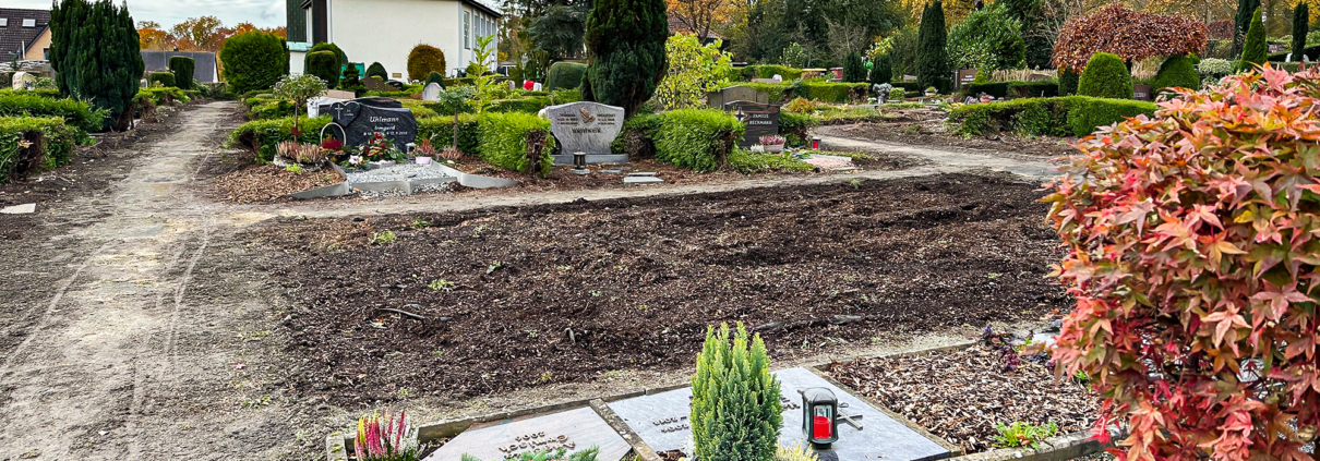 (HG) In Georgsmarienhütte wird zurzeit ein Friedhof restauriert und auf die gestiegene Nachfrage von pflegefreien Bestattungen vorbereitet. Auf dem Friedhof im Stadtteil Harderberg entstehen neue pflegefreie Urnengräber, die ab Januar 2026 angeboten werden. Der Friedhof bekommt ein neues Erdröhrensystem, in dem Urnen beigesetzt werden können – ohne eine Verpflichtung zur Grabpflege. Die Stadt reagiert damit auf die steigende Nachfrage nach pflegefreien Bestattungen. Im Zuge der Arbeiten werden außerdem Wege und Bepflanzung auf dem Friedhof erneuert. Die Arbeiten müssen in den Herbst- und Wintermonaten durchgeführt werden, da nur in diesem Zeitraum ein radikaler Rückschnitt oder das Entfernen von Hecken erlaubt ist.