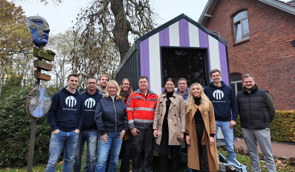 (HG) In Bersenbrück wurde am Freitag eine kleine mobile Unterkunft für Obdachlose eröffnet. Eine acht Quadratmeter große mobile Wohnbox (genannt „Little Home“) bietet einem obdachlosen Menschen einen geschützten Schlafplatz für den Winter. Gebaut wurde das kleine Holzhaus in einem Gemeinschaftsprojekt der Initiative „Brückenpfeiler“, bei der auch der VfL Osnabrück involviert ist, in Kooperation mit regionalen Unternehmen und der Abfallwirtschaft „AWIGO“ des Landkreises. Nach der Abnahme durch den TÜV wurde es am Freitag offiziell an die Caritas übergeben. Insgesamt stehen in Deutschland inzwischen mehr als 350 dieser Minihäuser, eins davon ist jetzt auch im Landkreis Osnabrück.