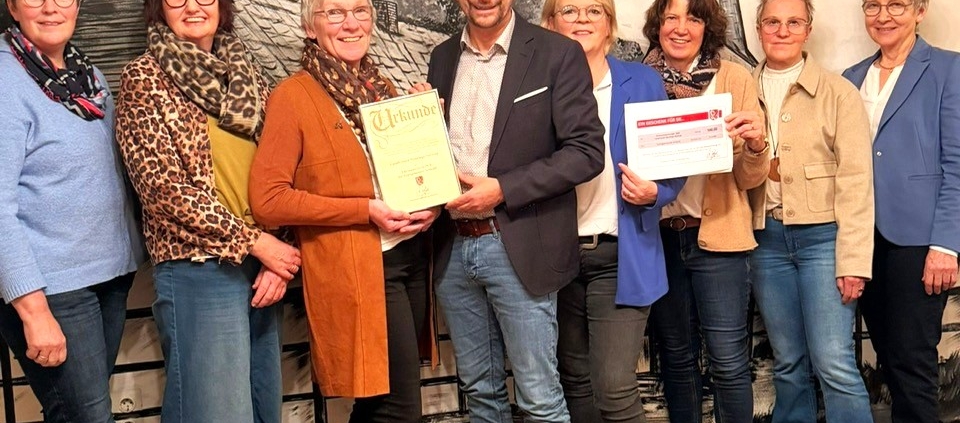 (HG) In der Samtgemeinde Artland wurden die Landfrauen Menslage/Nortrup mit dem Ehrenamtspreis ausgezeichnet. Bürgermeisterin Doris Schmidt und Samtgemeindebürgermeister Michael Bürgel haben ihnen gestern die Auszeichnung überreicht. Sie haben den Preis für ihr langjähriges Engagement für die Gemeinde erhalten – nicht umsonst seien ihre Mitgliedszahlen beständig. Ihr Einsatz bereichere das gesellschaftliche Leben in Menslage deutlich, heißt es in einer Mitteilung. Die Landrauen Menslage/Nortrup organisieren Freizeitprogramme für Frauen im Nordkreis, sie feiern im nächsten Jahr 75-jähriges Bestehen.