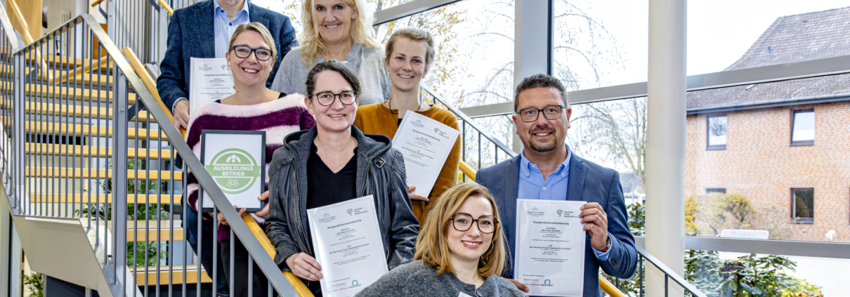(HG) Im Osnabrücker Südkreis gibt es eine neue Kooperation für neue Pflege-Azubis. Die Hermann-Freye-Gesamtschule Dissen und das Alten- und Pflegeheim Haus Schlüter wollen in der Berufsorientierung demnächst noch enger zusammenarbeiten. Beide Partner haben eine Kooperationsvereinbarung geschlossen, mit dem Ziel den Jugendlichen den Einstieg in die Pflege attraktiver und leichter zu machen. Es geht ihnen darum, eine „Grundlage für ihre berufliche Zukunft zu bieten und die durch konkrete Erfahrungen […] bei ihrer Berufswahl zu unterstützen“. Die Partnerschaft wird auch vom Landkreis Osnabrück begleitet: Die Servicestelle der MaßArbeit unterstützt die Jobvermittlung zwischen Schule und Ausbildungsbetrieb.