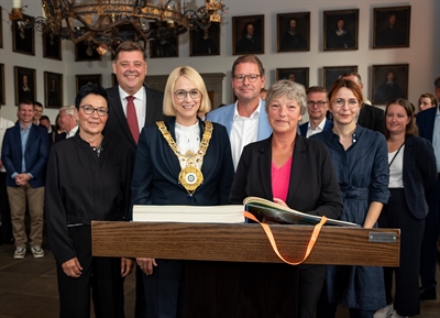 ©Stadt Osnabrück/Monika NestmannLandtagspräsidium trägt sich ins Goldene Buch ein
